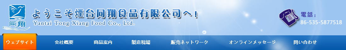 煙臺(tái)同翔食品有限公司はワールドワンダーランドと言われる蓬萊に位置しており、西側(cè)は國(guó)家1級(jí)開放港、北は206號(hào)國(guó)道、新築された潮水國(guó)際空港と近く接しており、立地的に恵まれていて、交通は非常に便利です。